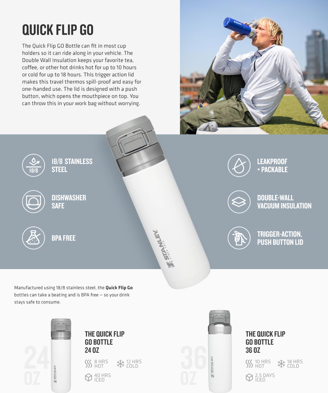 Stanley Quick Flip GO Water Bottle 36 oz | Push Button Lid | Leakproof and Packable for Travel and Sports | Insulated Stainless Steel | BPA-Free | Black